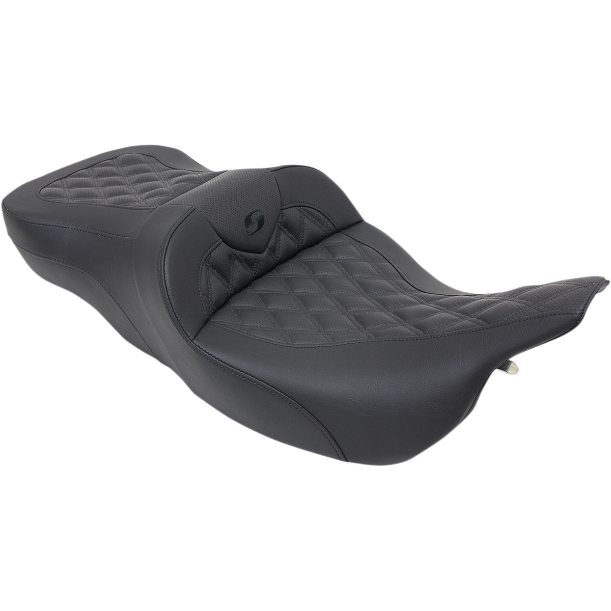 Refined split-cushion design separates the seating surface from the lumbar support to reduce tailbone/back pressure for maximum long-range comfort Seat features a combination of progressive density foam and SaddleGel™ inserts for superior driver and passenger comfort Seat has a perforated, ventilated leather cover for the ultimate in luxurious comfort, feel and looks Protective rain cover included Passenger pillion area has received special attention for comfort and to allow a clear view of the road ahead Accommodates Saddlemen or Harley-Davidson® backrests (sold separately) Made in the U.S.A.
