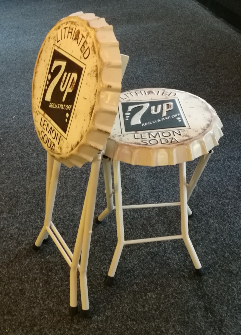7Up-metallijakkara. Kasaan taitettava, putkirunkoinen metallijakkara, jonka istuinosa muistuttaa isoa pullonkorkkia. Jakkaran korkeus 49 cm, istuinosan halkaisija 35 cm ja jakkaran paino 2,6 kg.