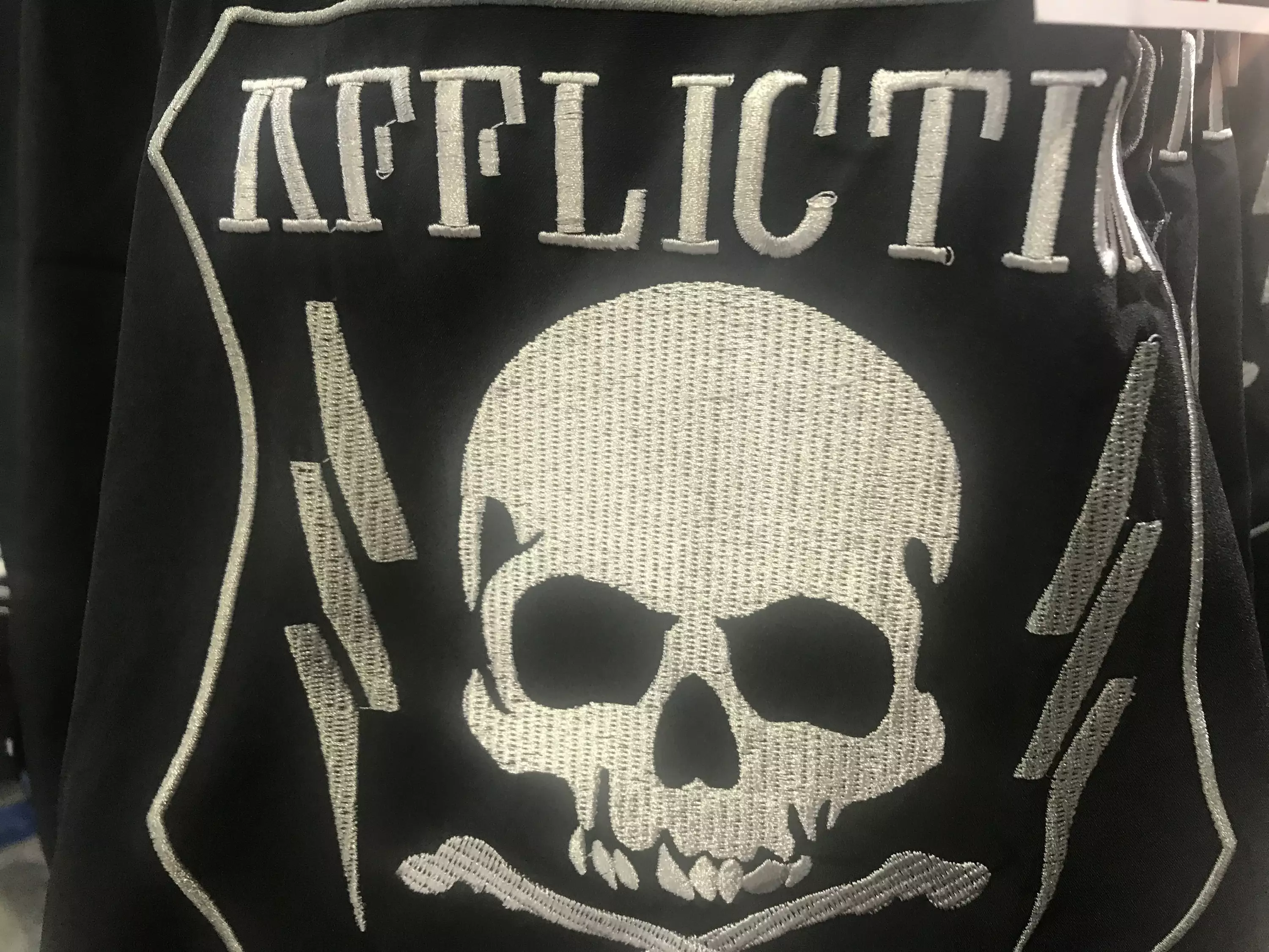 Affliction uimashortsit, joustavalla haaraosalla. Pääkallo broderaus ja muutenkin hienot yksityiskohdat. Alviton jenkki hinta ollut $69,50. Suomessa ja Ruotsissa kaupanhinta noin 95euroa.