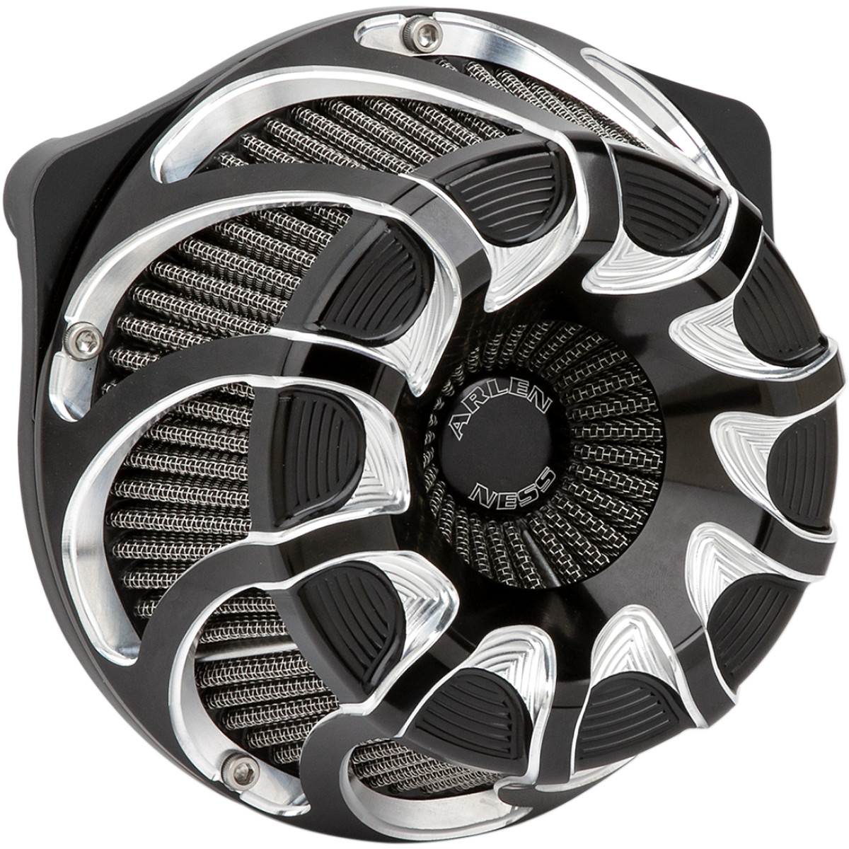 Black stainless steel jacketed inverted filters feature an inverted pleated top and 360° of pleated sides to pull in filtered air from every angle Forged billet aluminum backing plate features patented Big Sucker™ hidden breather technology and a radius air inlet for smooth airflow Forged billet air filter covers feature exposed design and a CNC inverted top that acts as a velocity stack to help pull in more air flow Hidden breathers are o-ringed at the heads and exits at throttle body/carb to create a virtually closed-loop system Performance filters features a black synthetic filter element wrapped in a stainless steel jacket Filter is water resistant eliminating the need for a rain sock Not legal for street use on pollution controlled vehicles. CNC machined from forged billet aluminum No external hoses or hardware needed Made in the U.S.A.