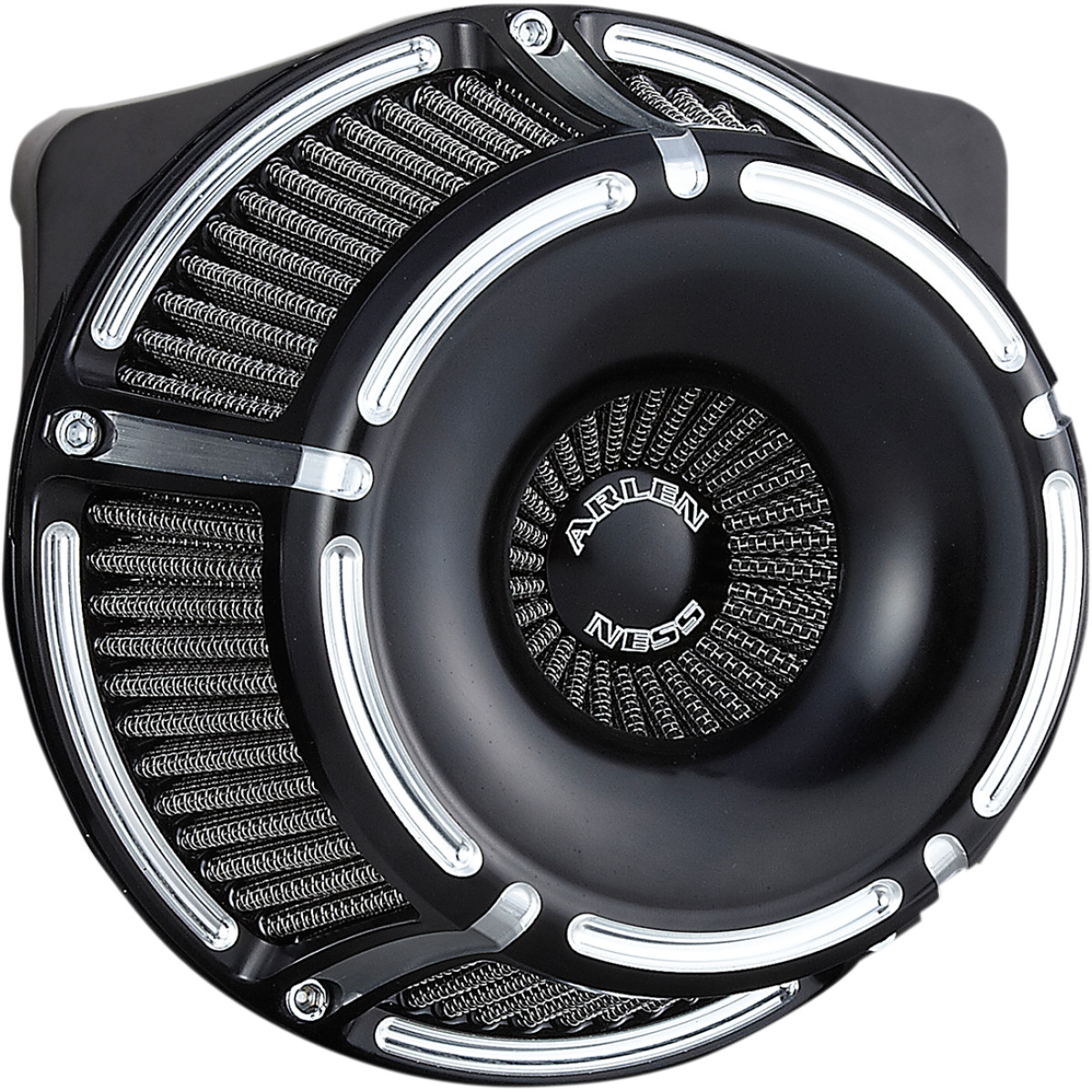Black stainless steel jacketed inverted filters feature an inverted pleated top and 360° of pleated sides to pull in filtered air from every angle Forged billet aluminum backing plate features patented Big Sucker™ hidden breather technology and a radius air inlet for smooth airflow Forged billet air filter covers feature exposed design and a CNC inverted top that acts as a velocity stack to help pull in more air flow Hidden breathers are o-ringed at the heads and exits at throttle body/carb to create a virtually closed-loop system Performance filters features a black synthetic filter element wrapped in a stainless steel jacket Filter is water resistant eliminating the need for a rain sock Not legal for street use on pollution controlled vehicles. CNC machined from forged billet aluminum No external hoses or hardware needed Made in the U.S.A.