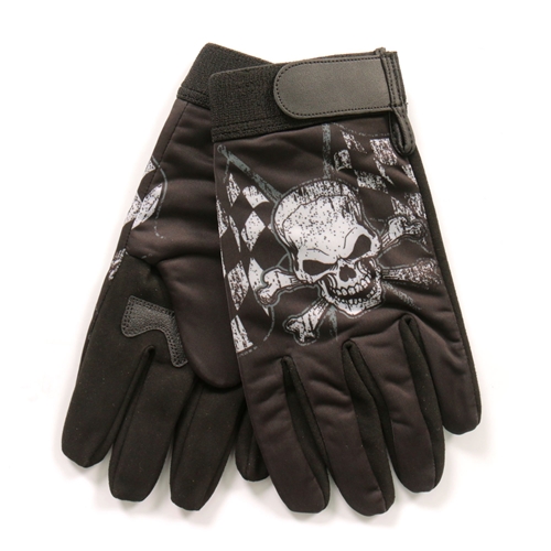 Ajohanska Checkered Flags, mekaanikon käsineet, Hot Leathers. Joustavassa ranneosassa lisäkiristysmahdollisuus tarraremmillä.