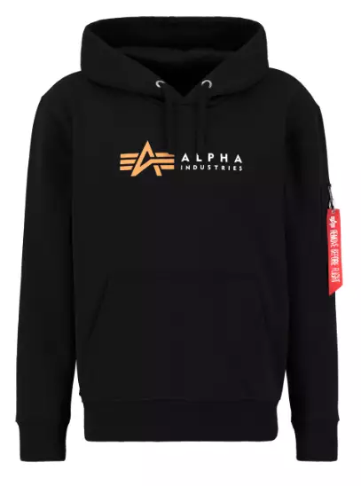 The Alpha Label Hoodie by ALPHA INDUSTRIES is a classic hooded shirt designed for men. Made from a soft blend of cotton and polyester, this unlined Hoodie features a kangaroo pocket and long sleeves. The regular fit and logo pattern make this Hoodie a versatile addition to any casual outfit.