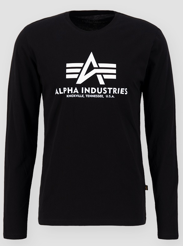 Alpha Pitkähiha musta. Musta, pitkähihainen T-paita, 100 % puuvillatrikoota. Mustassa paidassa edessä printattuna valkoinen logo.