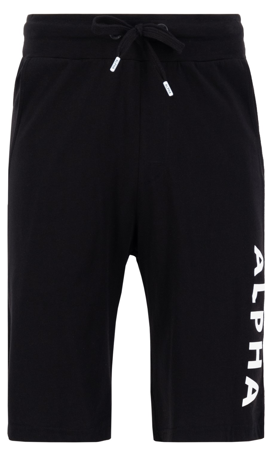 Alpha trikooshortsit, musta. Puuvillatrikoiset, pehmeät shortsit. Vasemmassa lahkeessa ALPHA-printti edessä, takana oikeassa lahkeessa takatasku. Sivutaskut molemmilla puolilla, vyötäröllä kuminauha sekä kiristysnyöri. Materiaali 100 % puuvilla.