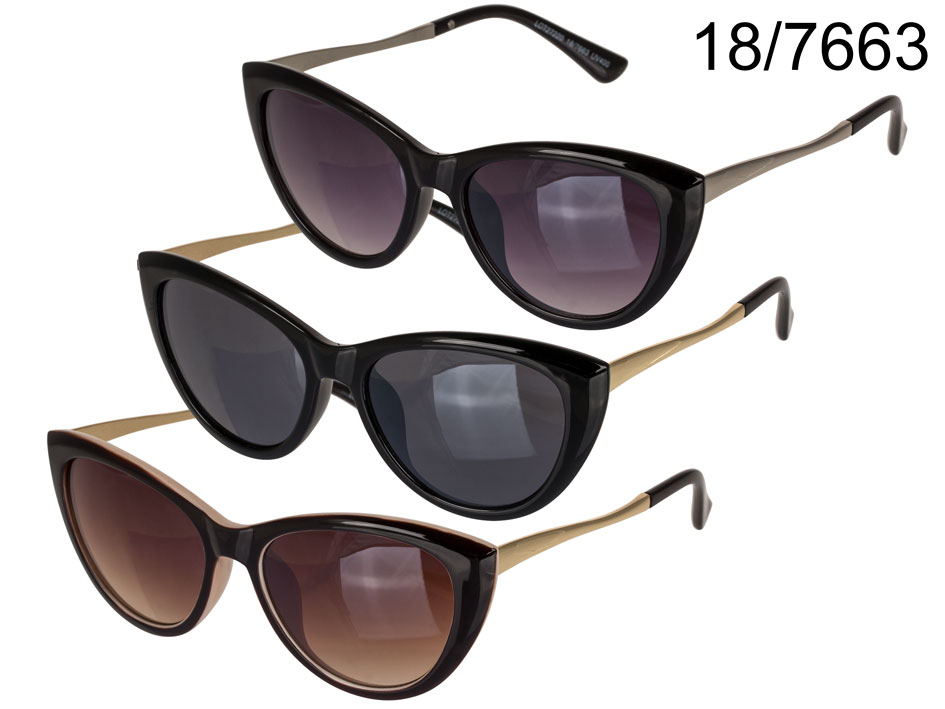 Aurinkolasit. Kissa aurinkolasit 3-värissä. Ylin harmaa linssi ja cromatut sangat Keskellä musta linssi ja kullan väriset sangat Alimpana ruskea linssi ja kullan väriset sangat, kehys sisäpuolelta beige