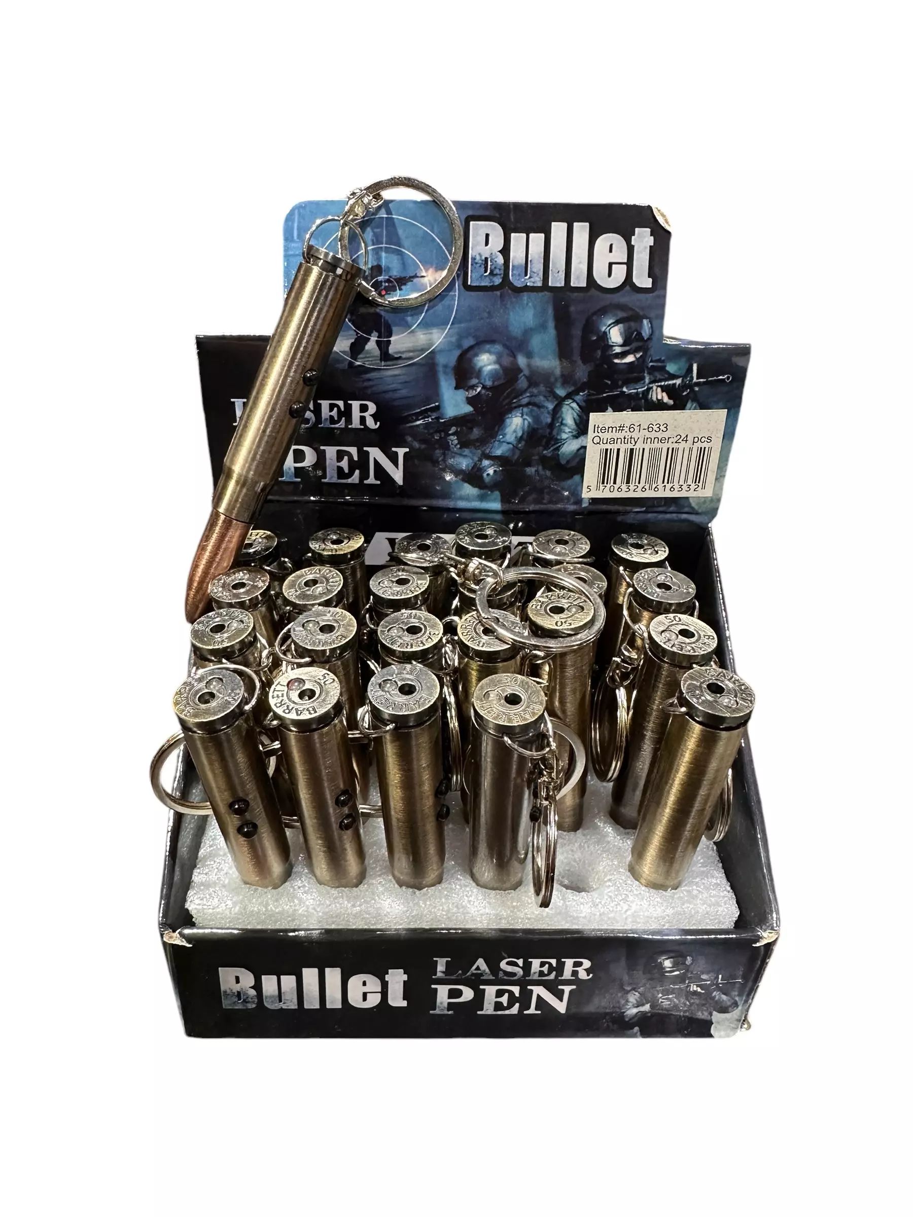 Avaimenperä Laser luoti, Led. Mitat 82 mm x halk. 12 mm. Tyylikkäässä kuparikärkisessä avaimenperässä on normivalo, sekä punainen laservalo. Maksimi laserteho 5mW. HUOM !Ei saa osoittaa silmiin.