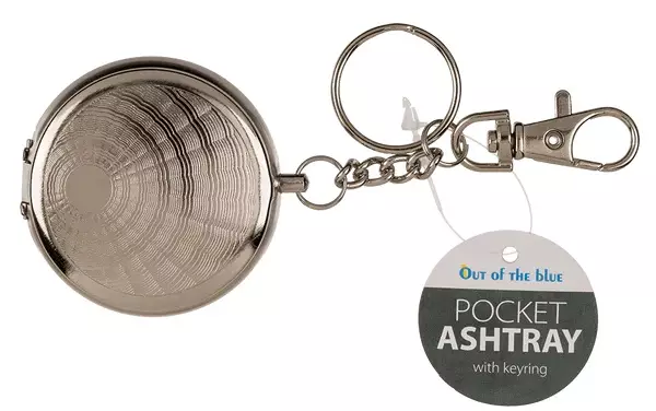 Avaimenperä matkarasia taskutuhkis. Kätevä avaimenperässä roikkuva matkatuhkis auttaa ympäristöä pysymään siistinä, eivätkä tumpit jää luontoon. Avaimenperässä on normi avainlenkin lisäksi papukaijahaka. Rasian halkaisija n. 50 mm.