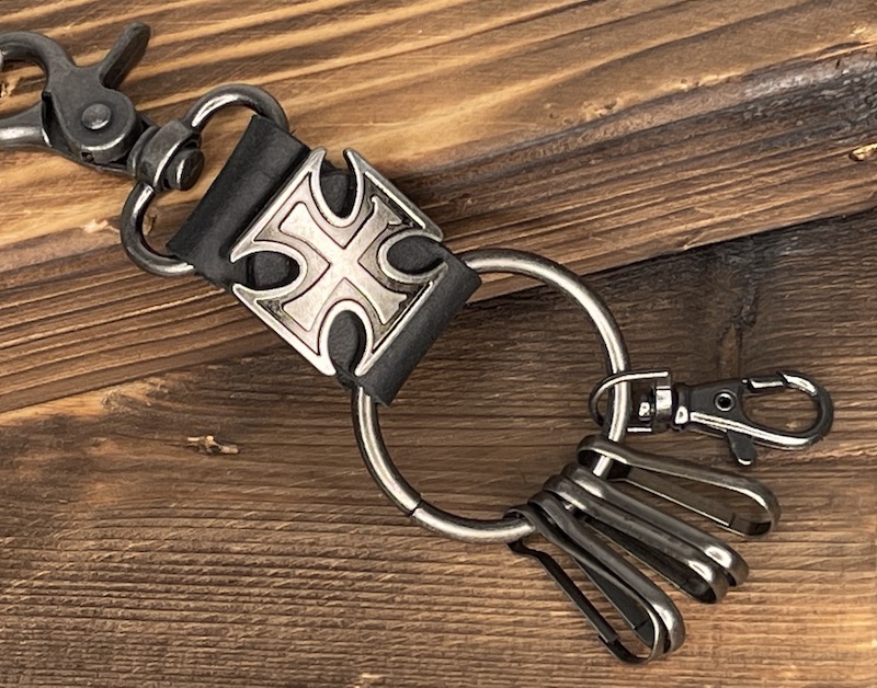 Avaimenperä musta nahka Maltanristi, tummat teräsosat