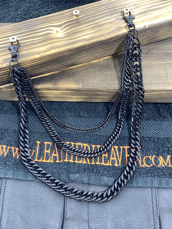 Avainketju 3-ketjua musta 2-hakaa Lompakkoketju kolme eripaksuista ketjua