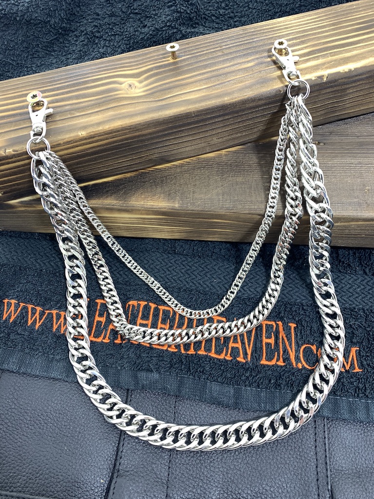 Avainketju 3-tuplaketjua eripaksuiset Lompakkoketju cromattu 2-hakasta