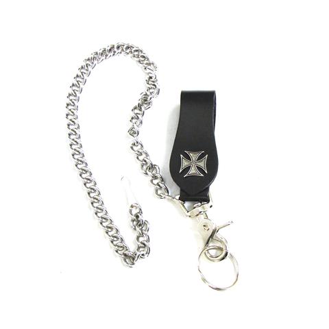 Avainketju 45cm Rautaristi logo, neppari kiinnitys, nahkainen vyölenkki.