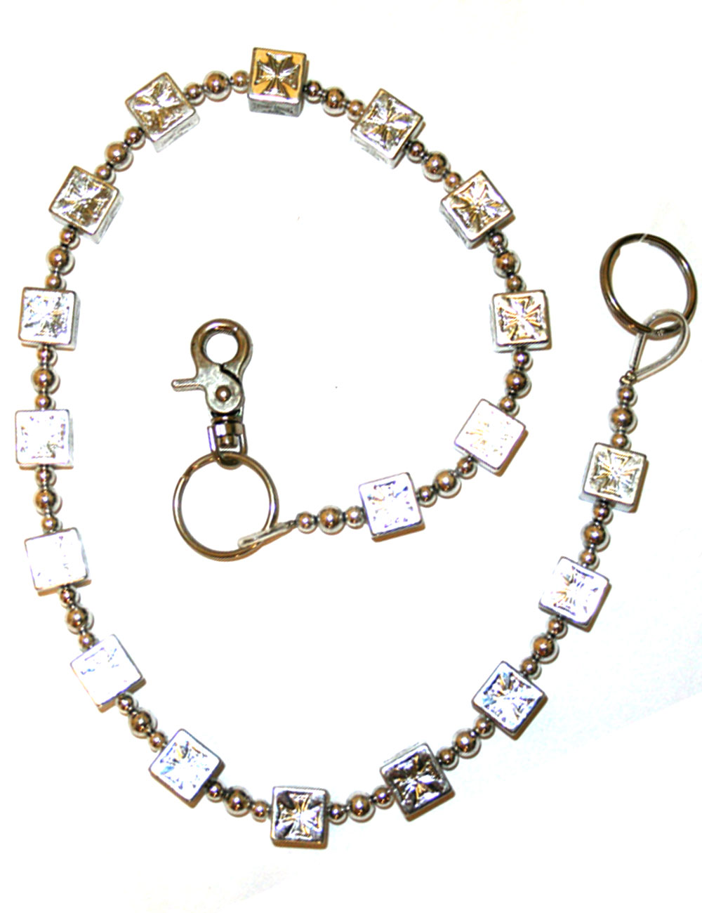 Avainketju, maltanristi, kromin värinen noppa/maltanristiketju lukolla ja renkaalla.