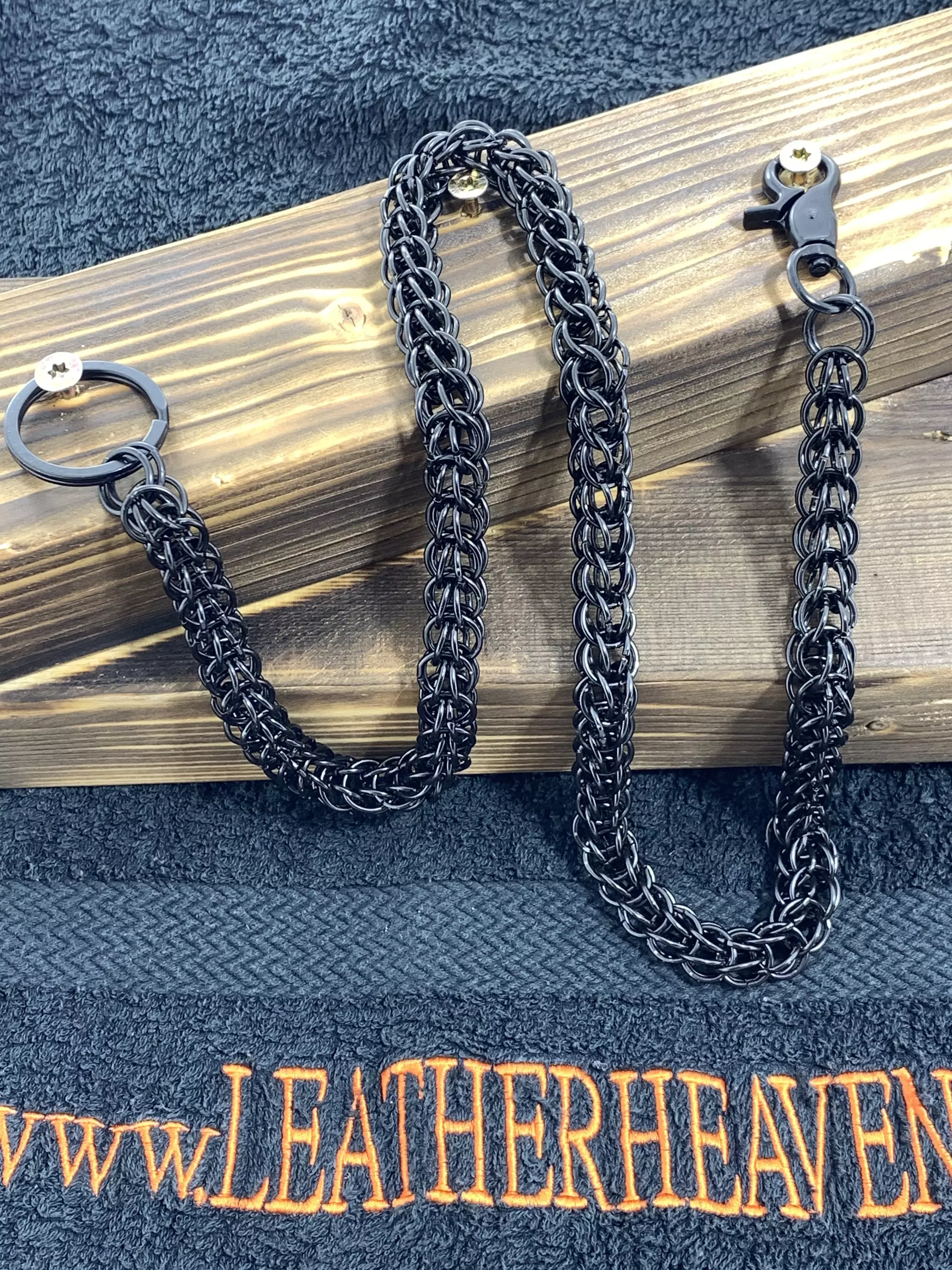 Avainketju musta paksupyöreä punottu Lompakkoketju 78cm haka ja rengas