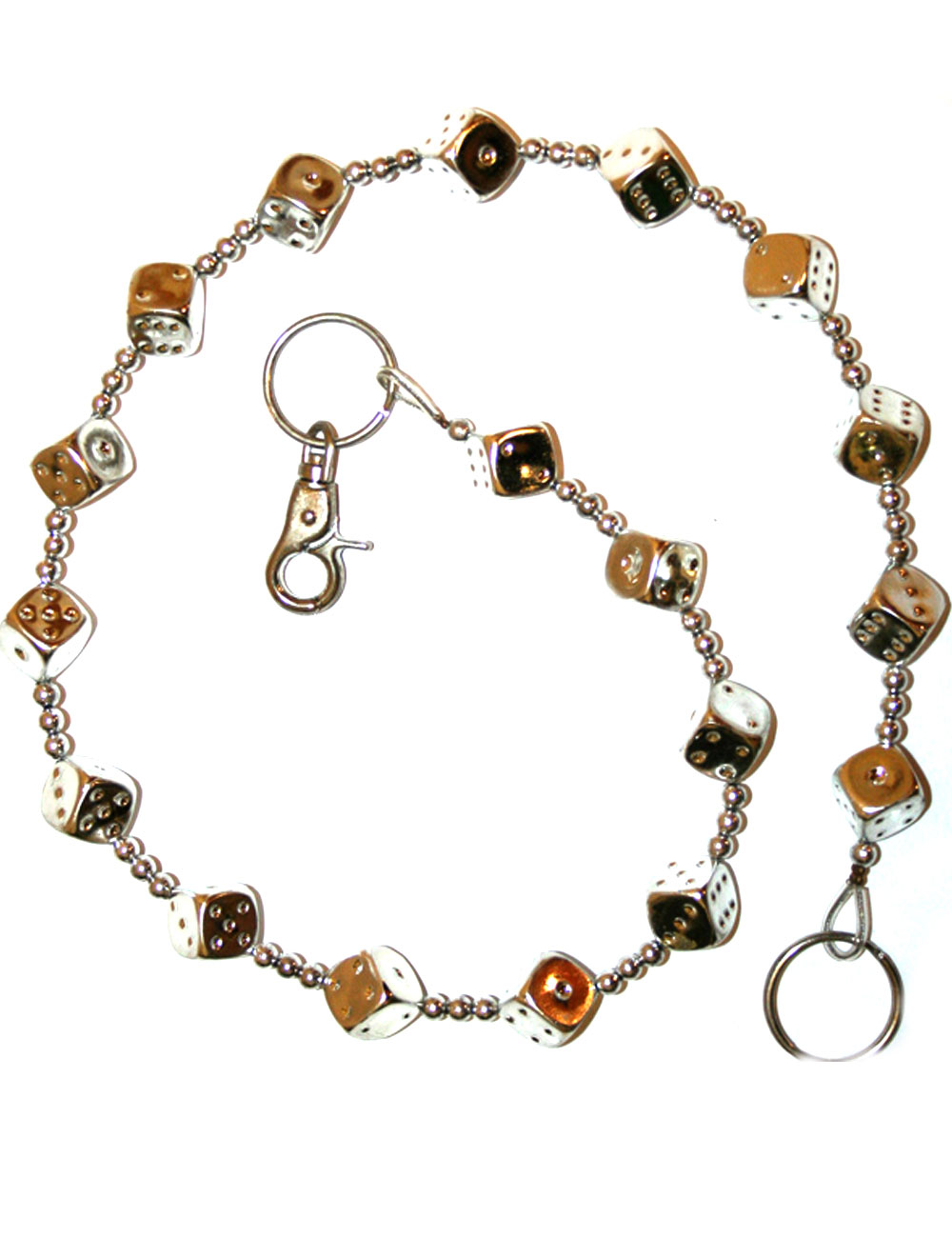Avainketju , kromin värinen noppaketju lukolla ja renkaalla.
