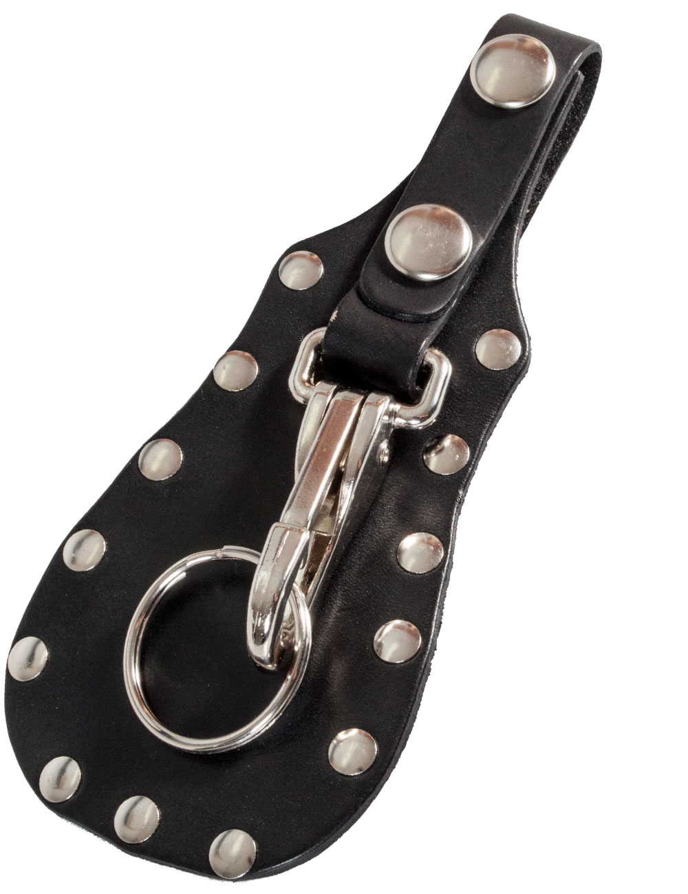 Avainlenkki vyöhön, Hot Leathers, musta avainlenkki niiteillä. Kiinnitetään vyöhön nahkalenkillä.