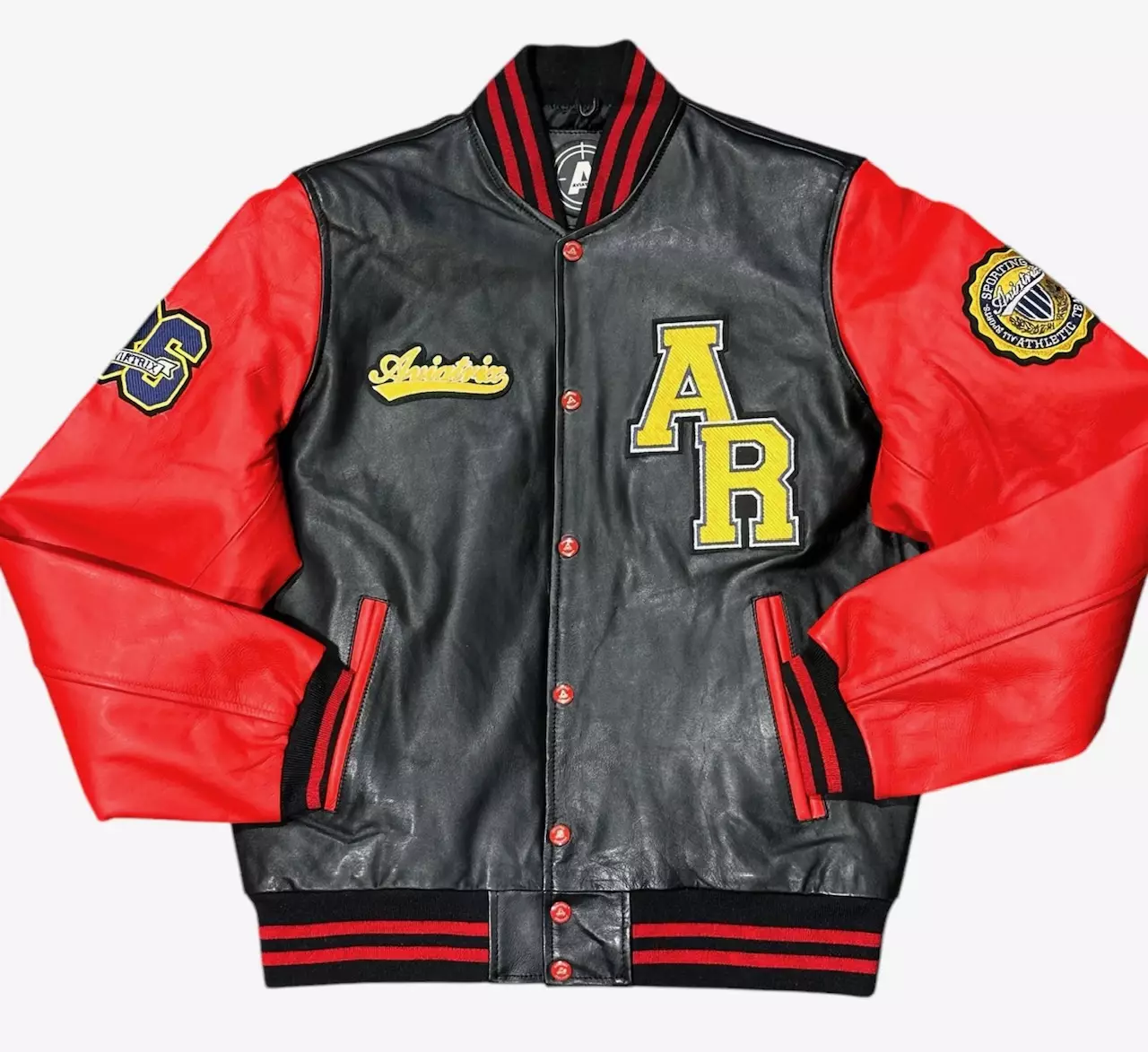 Baseball nahkatakki mustapunainen Aviatrix, naudan nahkaa. Vuori 100 % polyesteri.