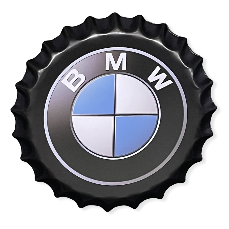 BMW -korkki/tarjotinkyltti Peltikyltti, halkaisija 40 cm