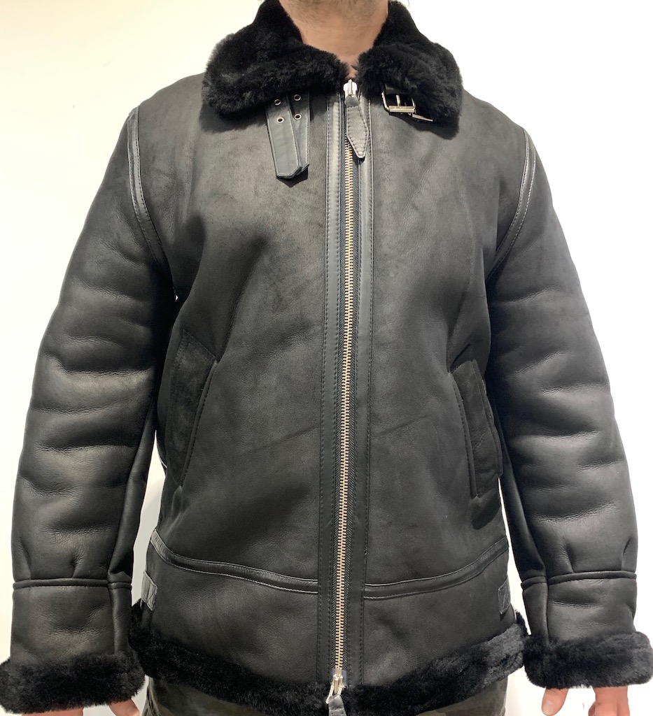 Bomber B3 lentäjän lammasnahkatakki. Musta molemmin puolin.