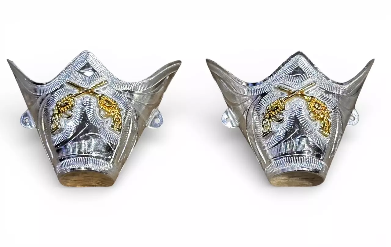 Bootsin kärkirauta, Crossed Pistols 2 kpl. Hopeanvärinen rauta, kullanvärinen kallo.