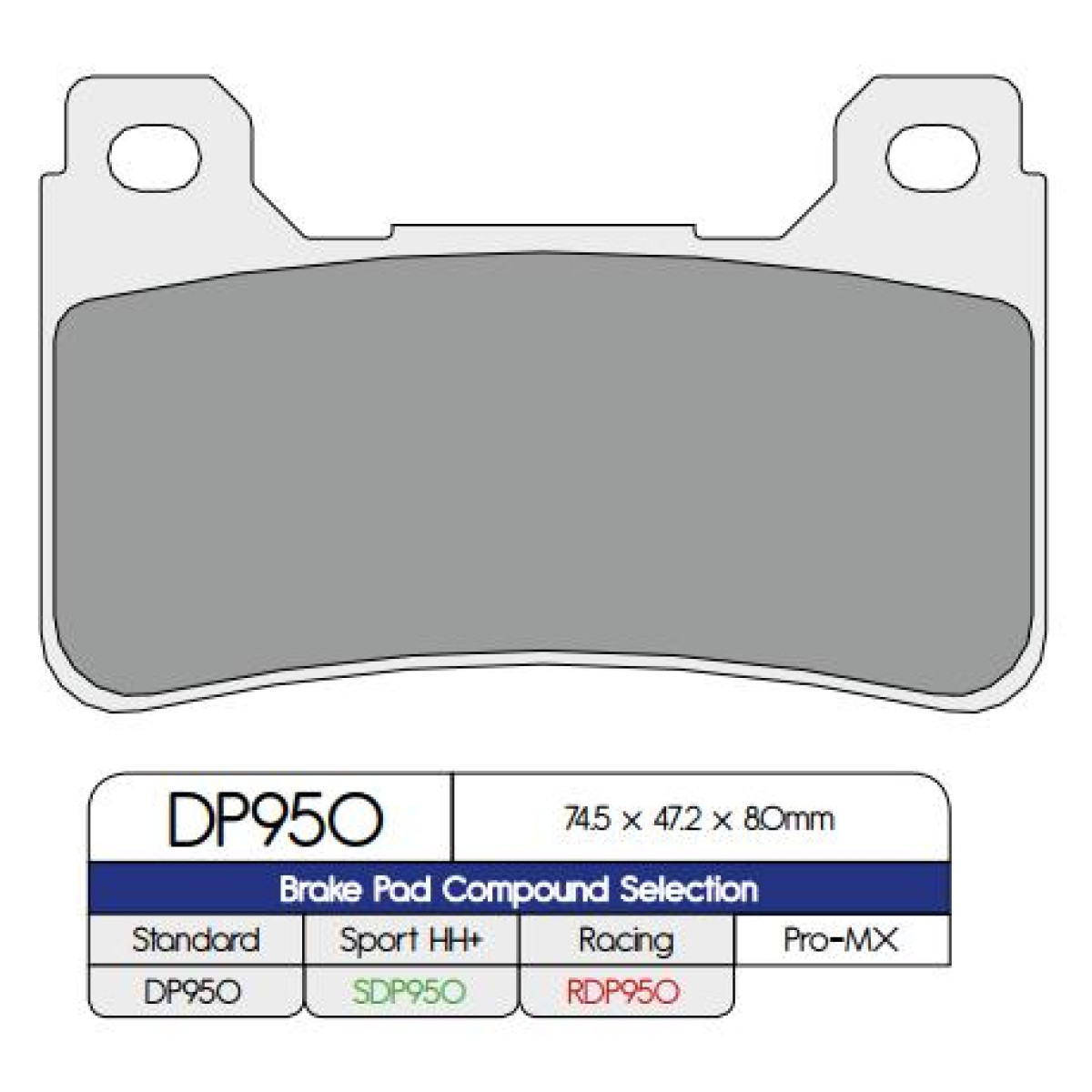 GG friction rated and made with DP Brakes' proven sintered metal material Gray-colored aluminum oxide-based ceramic material on rear of backing plate keeps heat away from caliper piston and fluid in extreme conditions for fade-free performance Pad compound gives equal performance in wet or dry conditions Ideal replacement for street and touring and off-road machines where durability is the prime requirement No brake fade