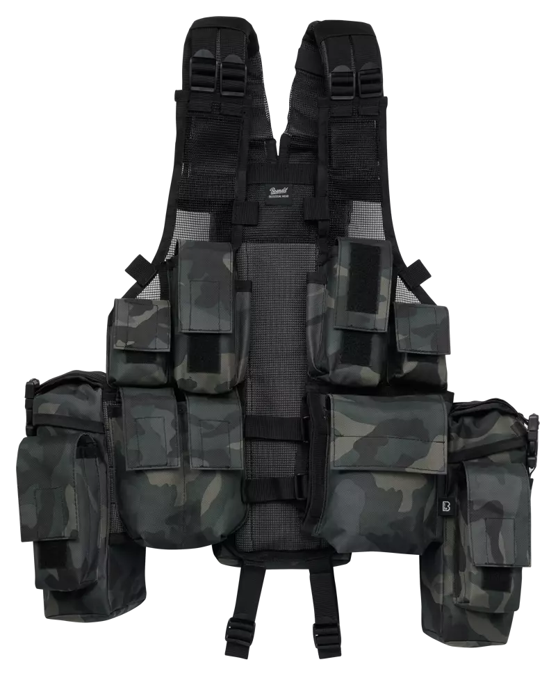 Brandit Taktinen Liivi, Dark Camo. Liivi vapaa-aikaan, metsälle, ulkoiluun, kalastukseen.. Toiminnallinen liivi, jossa paljon taskuja ja säilytystilaa, pehmustetut olkahihnat ja pikasoljet. Kevyt, kestävä ja käytännöllinen.