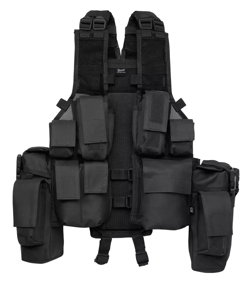Brandit Taktinen Liivi, Musta. Liivi vapaa-aikaan, metsälle, ulkoiluun, kalastukseen.. Toiminnallinen liivi, jossa paljon taskuja ja säilytystilaa, pehmustetut olkahihnat ja pikasoljet. Kevyt, kestävä ja käytännöllinen.