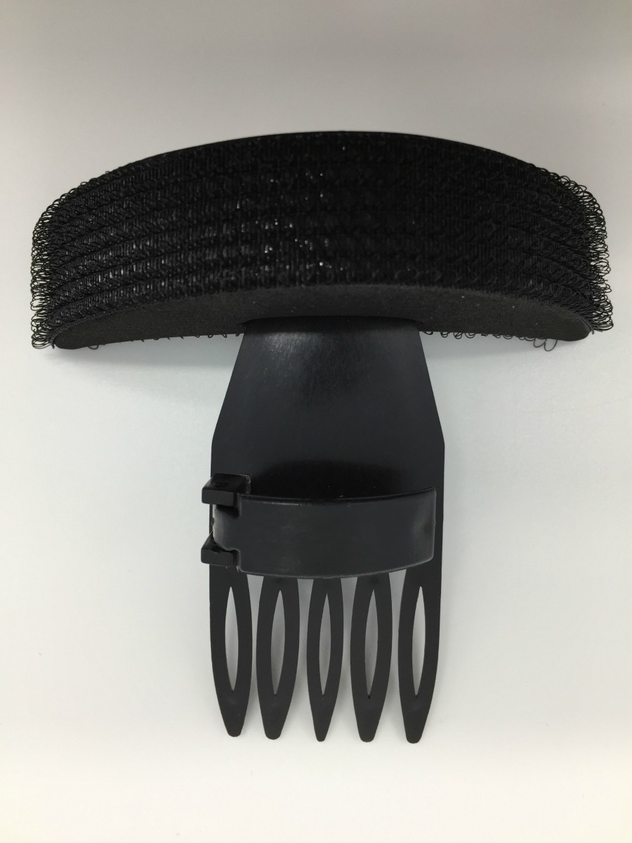 Bump Grip hiustenkohottaja. Tällä hiustenkohottajalla luot esim. näyttävän fiftari-lookin. Kohottaja pysyy hyvin hiuksissa kiinni ja on helppo irroittaa. Kaaren leveys 9 cm, korkeus n. 4 cm ("hiustenkohotuskorkeus") ja valkkiosan paksuus n. 2 cm. Kokomitta kaariosan yläreunasta kamman kärkeen n. 8 cm.