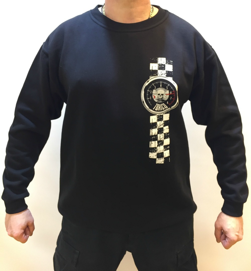 Collegepaita, Toxico, Hard & Fast . Paksua, pehmeää puuvillaa. Materiaali 75 % puuvillaa ja 25 % polyesteria. Painatukset sekä rinnassa että selässä.