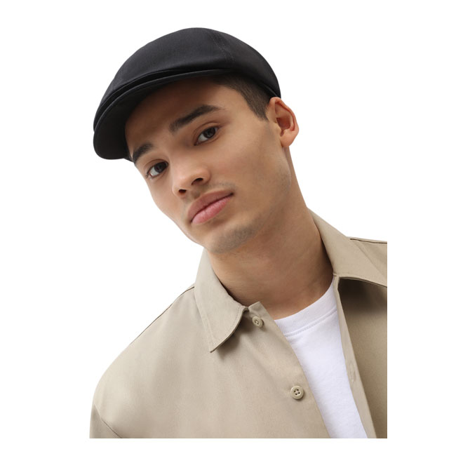 The Telida is a Dickies take on the traditional newsboy style cap. Made of hardwearing poly-cotton twill with an 8-panel construction and button on the top, featuring hidden snap on peak and reinforced back panel. Available in heather grey and black. A timeless piece made for all occasions.