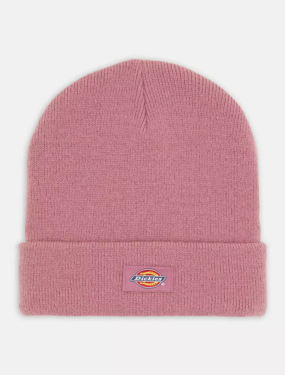 Dickies pipo, vaaleanpunainen. Marjapuuron vaaleanpunaisen pipon alareunassa n. 7 cm:n käänne, jossa keskellä edessä Dickies-logo. 100 % akryyli, hienopesu.