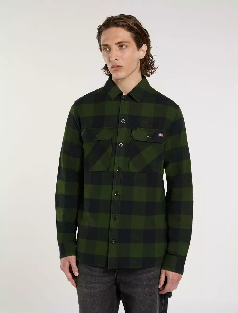 Dickies Sacramento pine vihreä. Männynvihreä ruudullinen flanellipaita kahdella rintataskulla. Materiaali 100 % puuvilla.