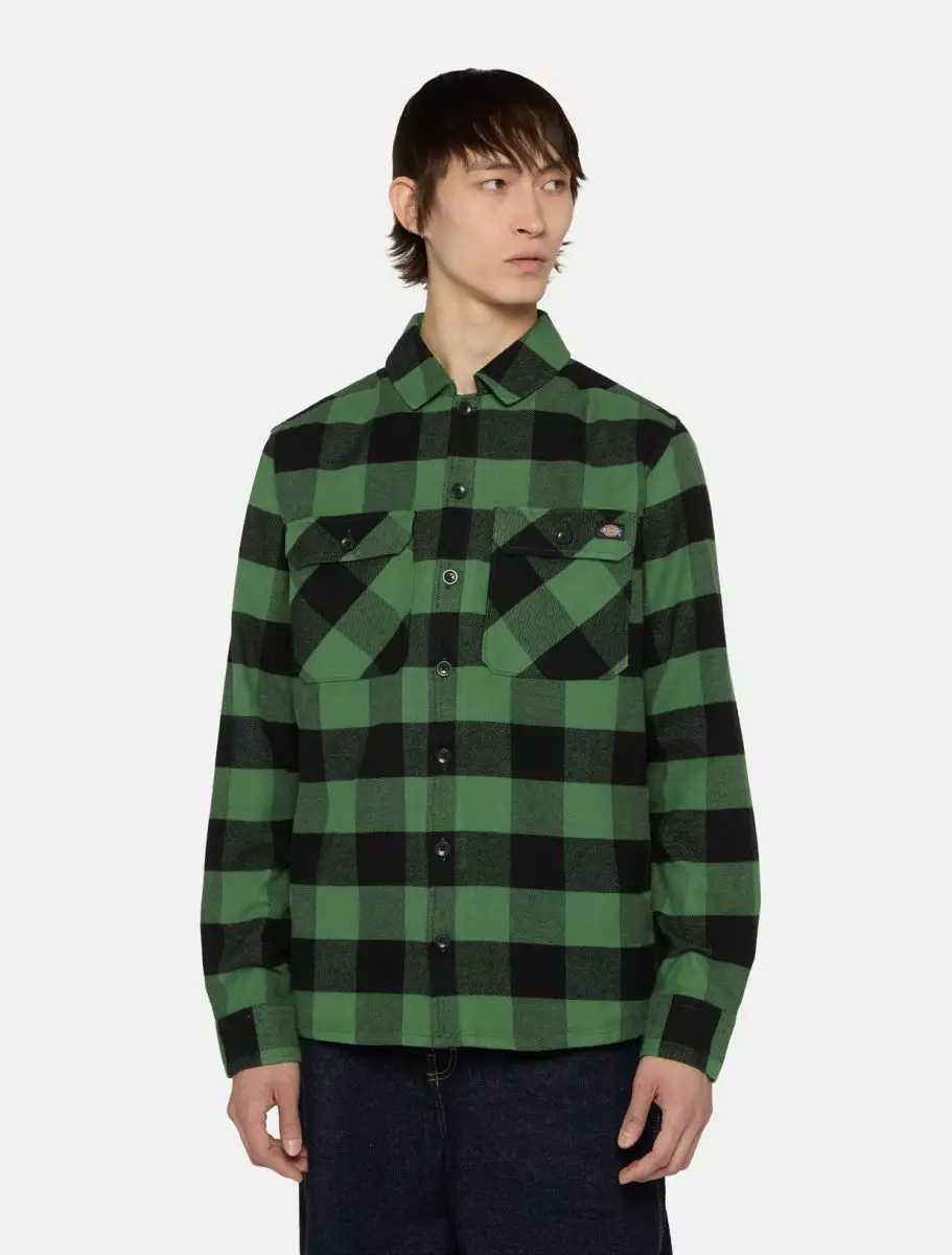Dickies Sacramento Elm green. Jalavanvihreä ruudullinen flanellipaita kahdella rintataskulla. Materiaali 100 % puuvilla.