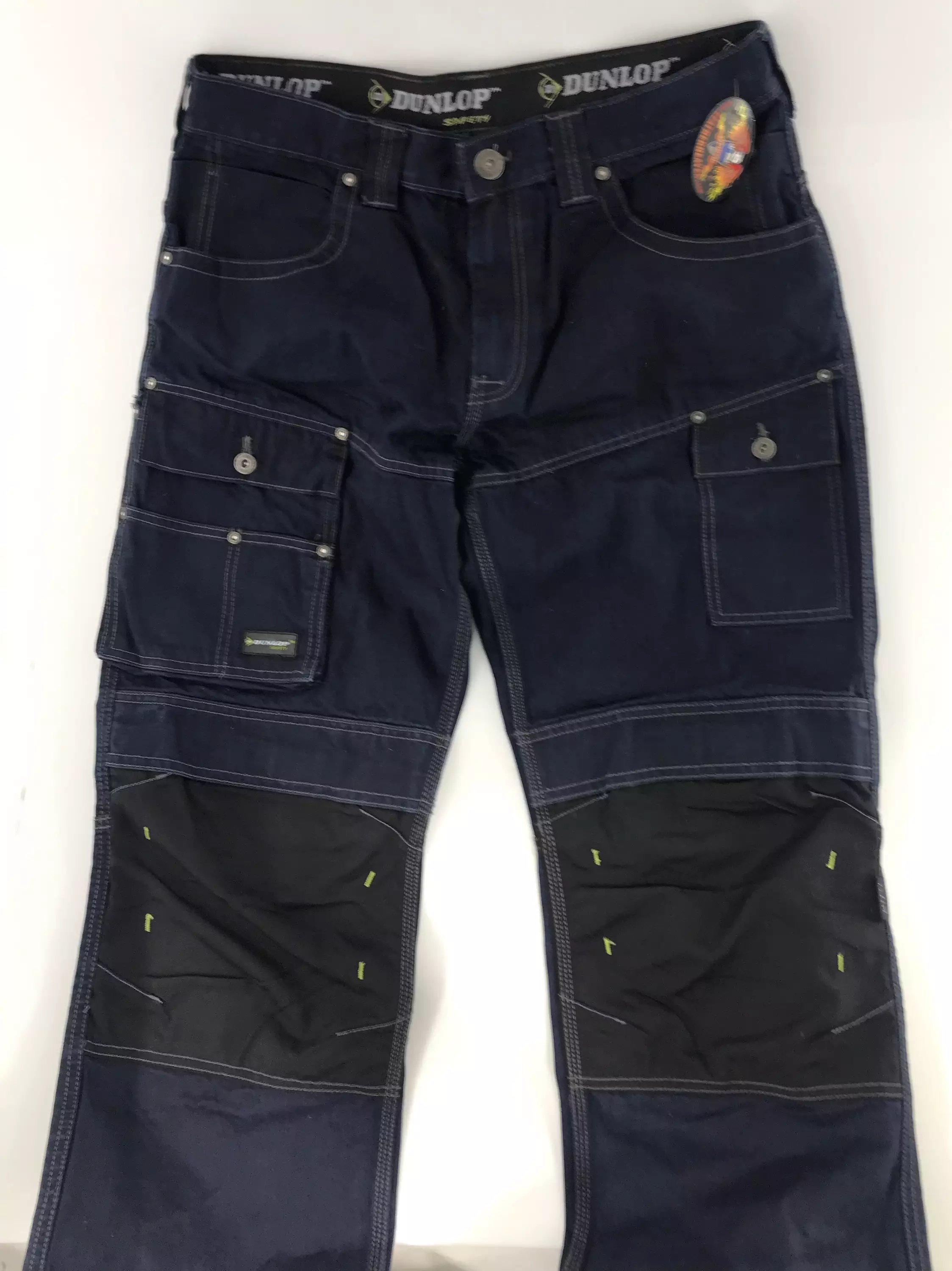 Dunlop Cordura-farkut, keskisininen. Farkut kestävää Cordura-materiaalia. Cordura kestää moninkertaisesti enemmän kulutusta kuin tavallinen nylonkangas. Housuissa vahamainen pinta, paitsi polvipaikoissa. Näyttävät farkkutikkaukset, paljon erilaisia taskuyksityiskohtia ja leikkaussaumoja. Etutaskuissa on molemmissa ns. "kellotaskut", tosin isommat kuin perinteisessä muodossaan. Lisäksi vasemman "kellotaskun" vieressä on osa tikattu kynän, tai esim. ruuvimeisselin mentäväksi pikkutaskuksi. Etureisissä on molemmin puolin erilaiset reisitaskut. Polvipaikkojen alle on mahdollista laittaa polvipehmusteet, niitä varten on tarrakiinnitteiset "taskut". Pehmusteita ei tule kuitenkaan housujen mukana. Takapuolella on kaksi taskua, joista toisessa on napilla suljettava läppä päällä. Housuissa viisi leveää vyölenkkiä. Housut sopvat hyvin kovempaankin menoon ja työhousuksi.