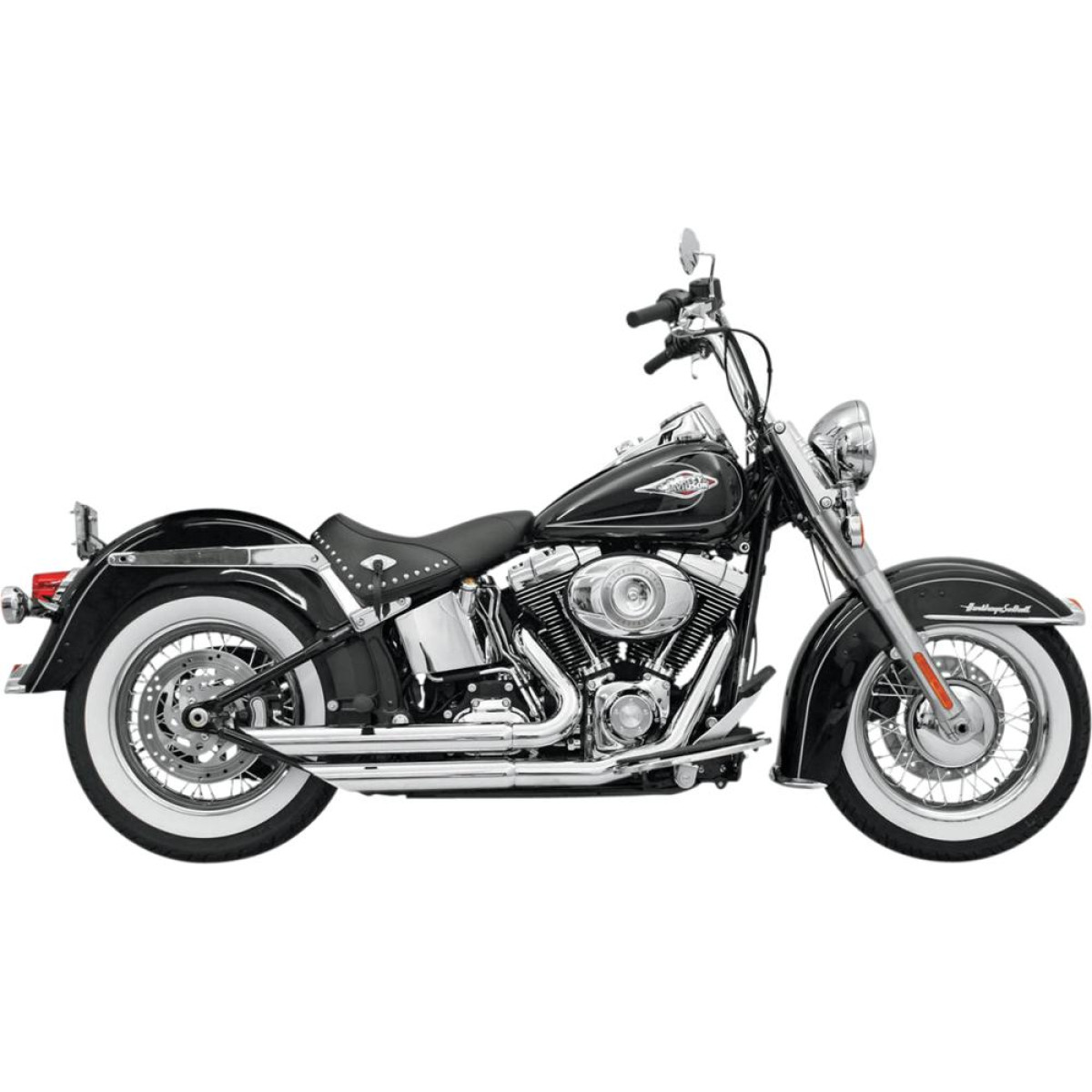 Overview of Product: Feature 16-gauge steel construction throughout 1-3/4" headpipes with 2-1/2" muffler bodies Includes mounting bracket and hardware Heat shields and baffles included (not removable on FireSweep style) Available with chrome or black finish Made in the U.S.A.