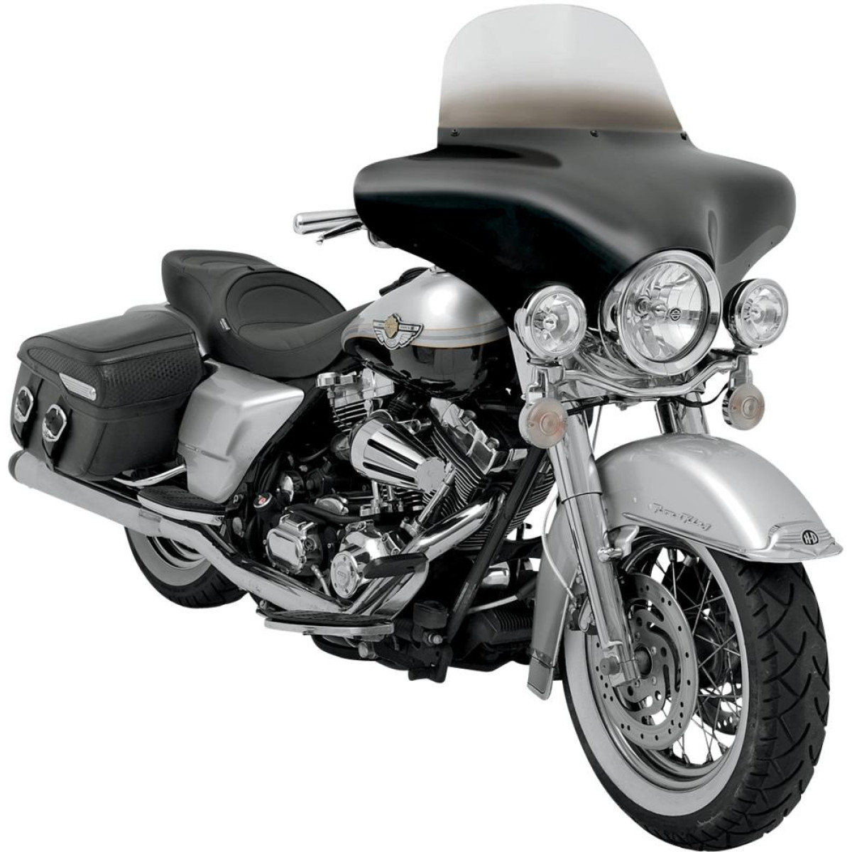 Features clean aerodynamic shape Inner fairing structure is black ABS Fairing outer shell is opaque black Lucite with a class A finish that looks great as is, or can easily be painted Memphis Shades exclusive No-Tool Trigger-Lock mounting kits feature a detach system that allows you to quickly and easily remove or install your fairing, or swap out with other Memphis Shades windshields, sportshields or fairings Trigger-Lock kits are available in a combination of CNC-machined aluminum plates, stainless steel bolts and aluminum anchors or black E-coated plates, bolts and anchors for a clean appearance that’s built to last Fairing is predrilled and fitted with push-out hole plugs for easy wind deflector installation Windshields are available in four height and seven translucent color options, as well as clear and solar (a light tint with 72% visible light transmission) Optional wind deflectors for increased downward airflow, windshield tri-pouch for storage and fairing trims for style are also available Now you can add an optional sound system to the Batwing Fairing with Hogtunes’ new speaker system, PART #4405-0218