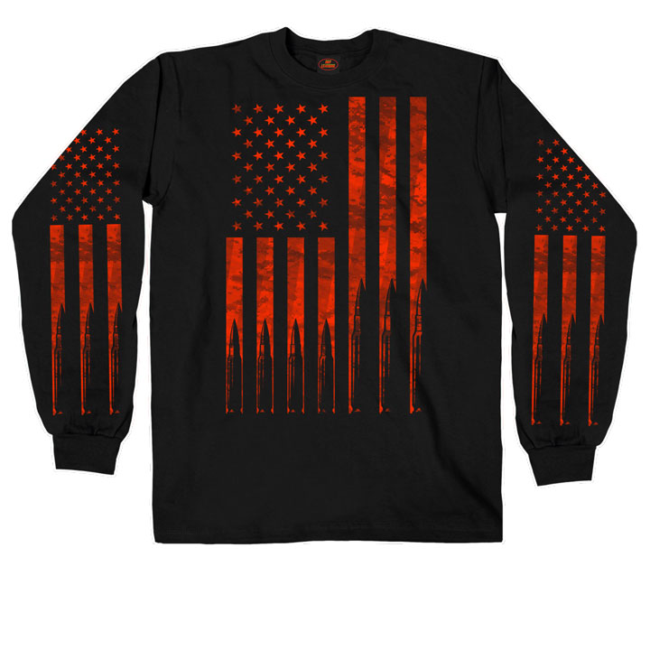Flag Bullets, Hot Leathers, pun/musta . Musta pitkähihainen paita lippu/luoti kuvioinilla. Koko M-XL.