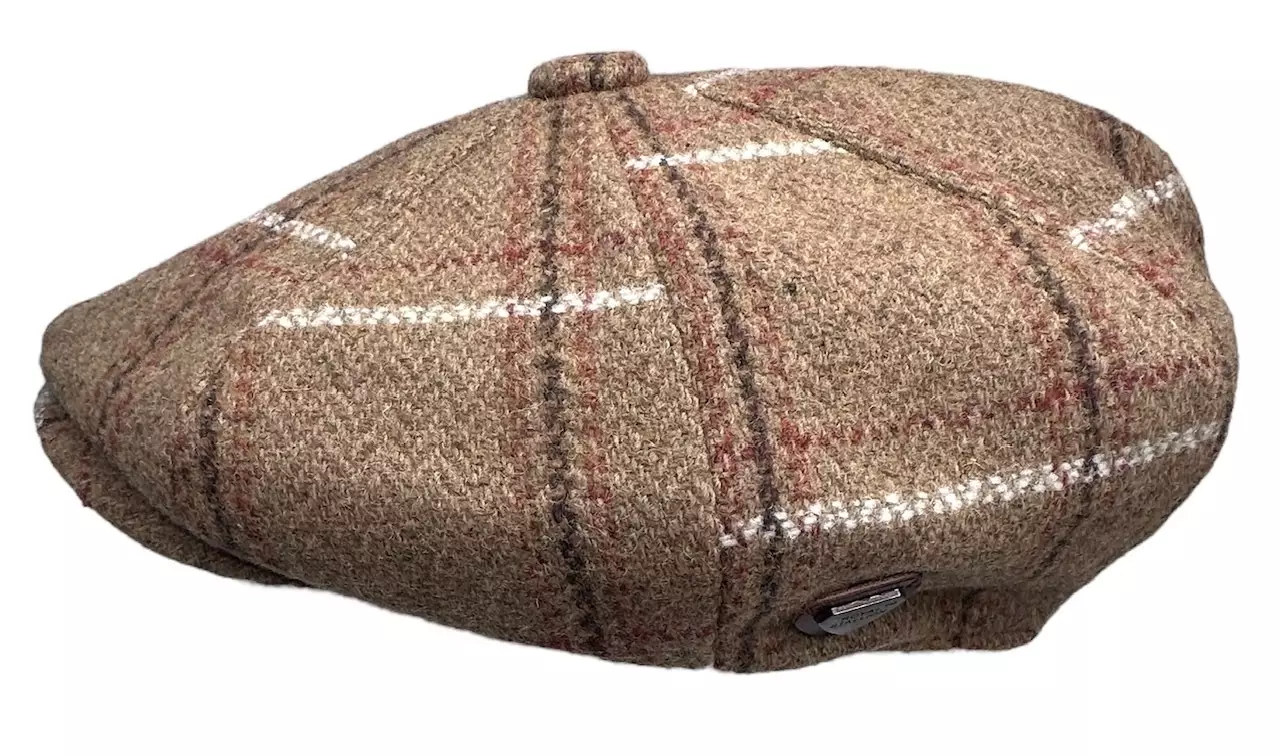 Flatcap 8-panel, Beige ruutuviivoin. Onesize, 8-paneelinen lätsä. Materiaali 60 % villa, 30 % polyesteri, 10 % sekoite. Flanellimainen lämmin vuori. Lätsän lipassa on neppari, jolla lätsän etuosan mallia pystyy säätämään.