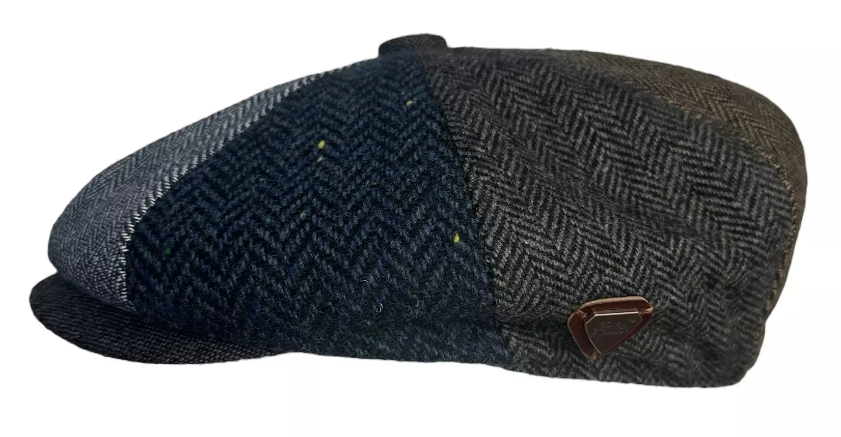 Flatcap 8-Panel, moniväri. Onesize, 8-paneelinen villasekoitelätsä, jonka lipassa neppi. Materiaali 60 % villaa, 30 % polyesteria, 10 % sekoitetta.