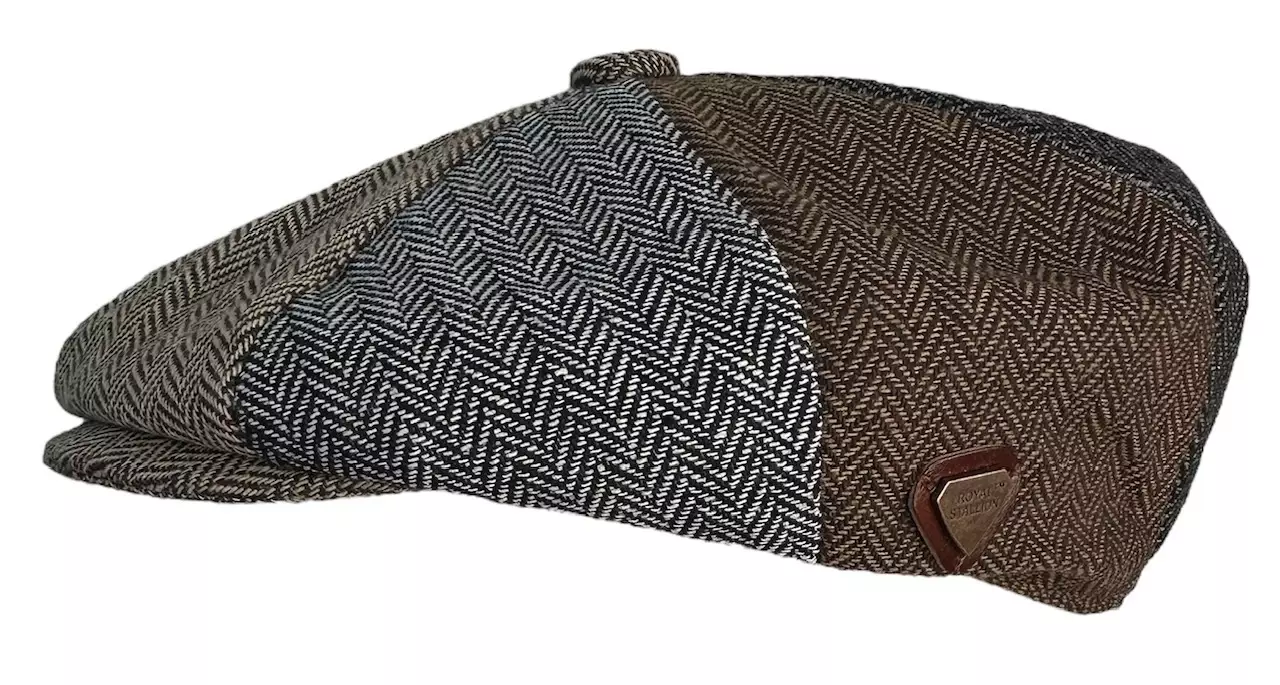 Flatcap Multipanel, Beige/ruskea. Onesize, 8-paneelinen villasekoitelätsä, jonka lipassa neppi. Materiaali 60 % villaa, 30 % polyesteria, 10 % sekoitetta.