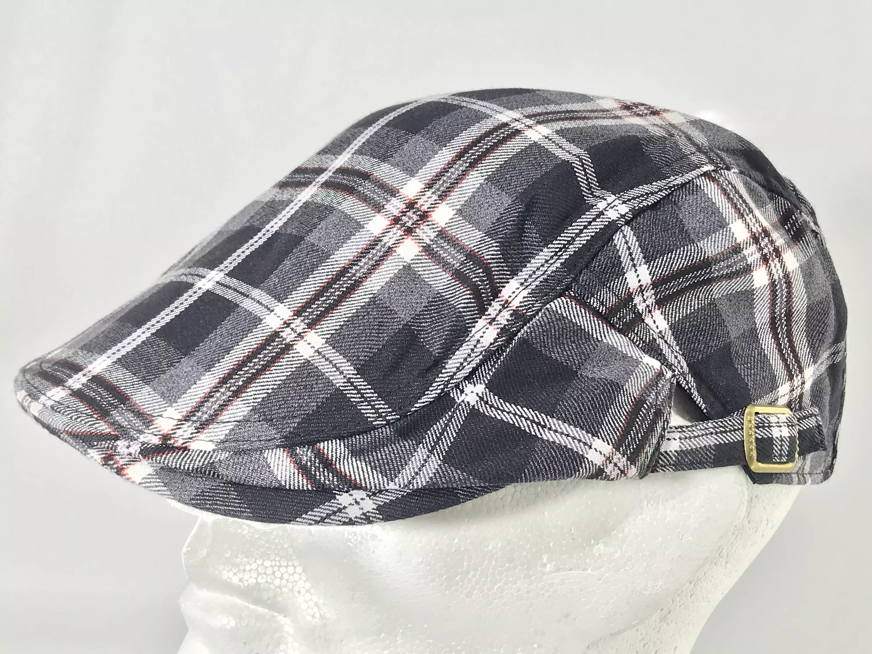 Flatcap, mustaruutu glitter. Somistevärinä vaaleanpunaista glitterlankaa. Sivuilla säätömahdollisuus.