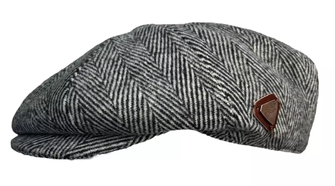 Flatcap Tweed, Valkomusta. Materiaali 60 % villa, 30 % polyesteri, 10 % sekoite. Flanellimainen lämmin vuori. Lätsän lipassa on neppari, jolla lätsän etuosan mallia pystyy säätämään.
