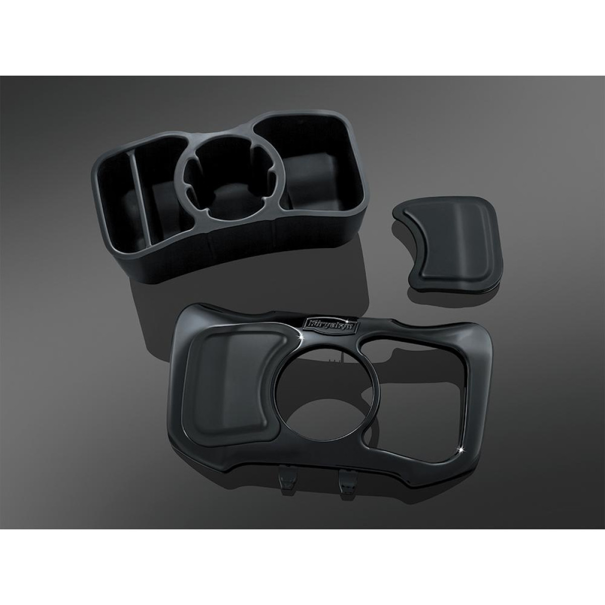 Convenience at your fingertips Stylish cubby features a soft foam insert that fits snugly in the glove box Trim top comes with black snap-in lids and features an easy access drink holder in the center The top fastens the same as the stock cover and can be interchanged to regain locked storage