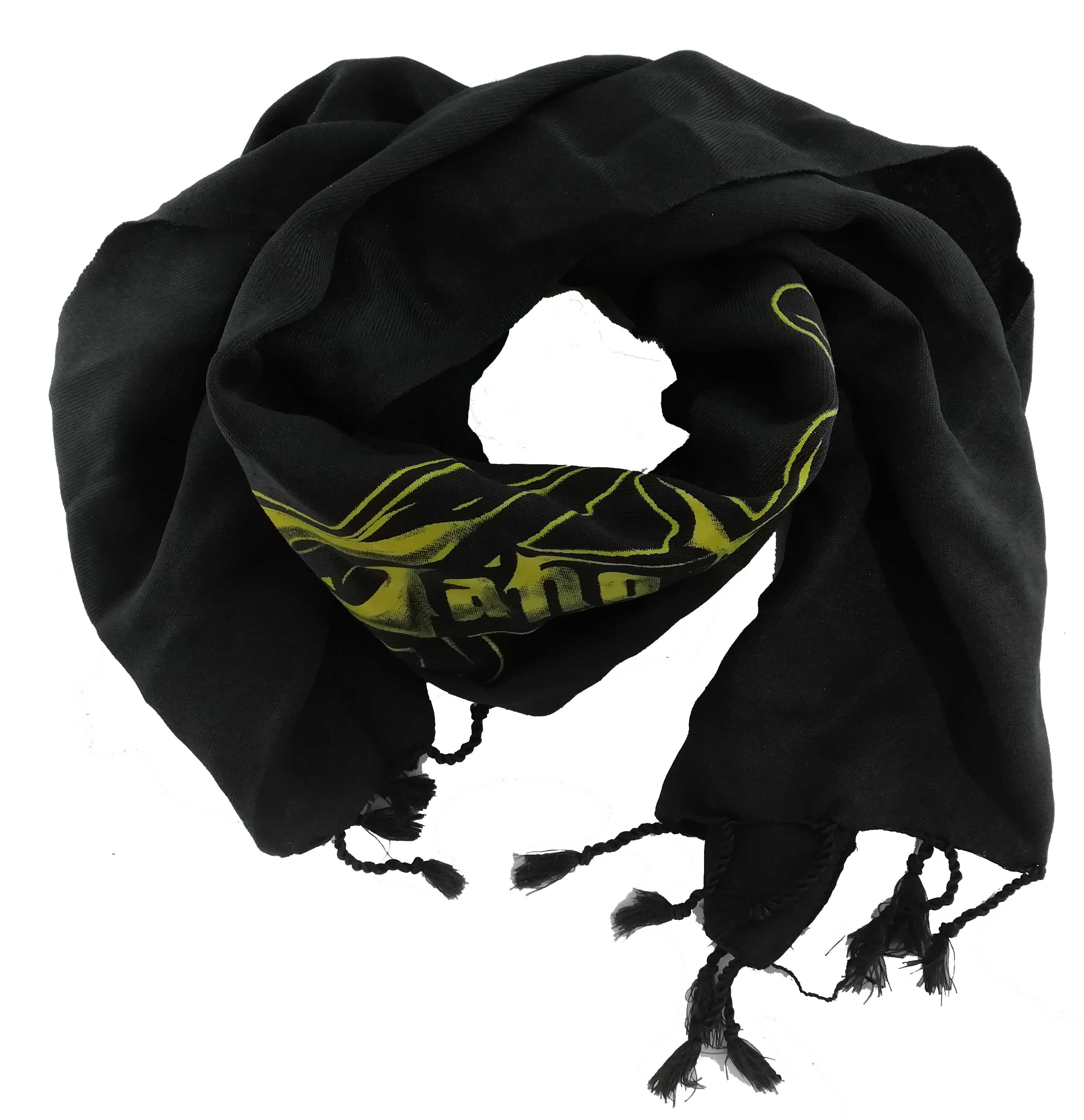 Gun Gang Wear huivi . Huivin tekstin väri keltainen. huivin koko 113 x 56 cm.