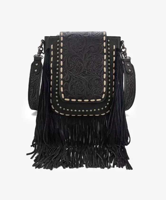 Hapsulaukku, musta. Kaunis vetoketjulla avattava käsilaukku nahkahapsuilla ja irrotettavalla olkahihnalla. Nepparillisessa kansiläpässä kukkapainatus, lisäksi kontrastina valkoiset nahkanyörikoristelut ja koristeniitit. iLaukun takapuolella on yksi paikkatasku, sekä pystysuuntainen vetoketjutasku. Vuorissa vetoketjutasku pikkutavaroille, sekä kaksi avotaskua esim. aurinkolaseille. Materiaali Polyuretaani + nahka, vuori polyesteria.