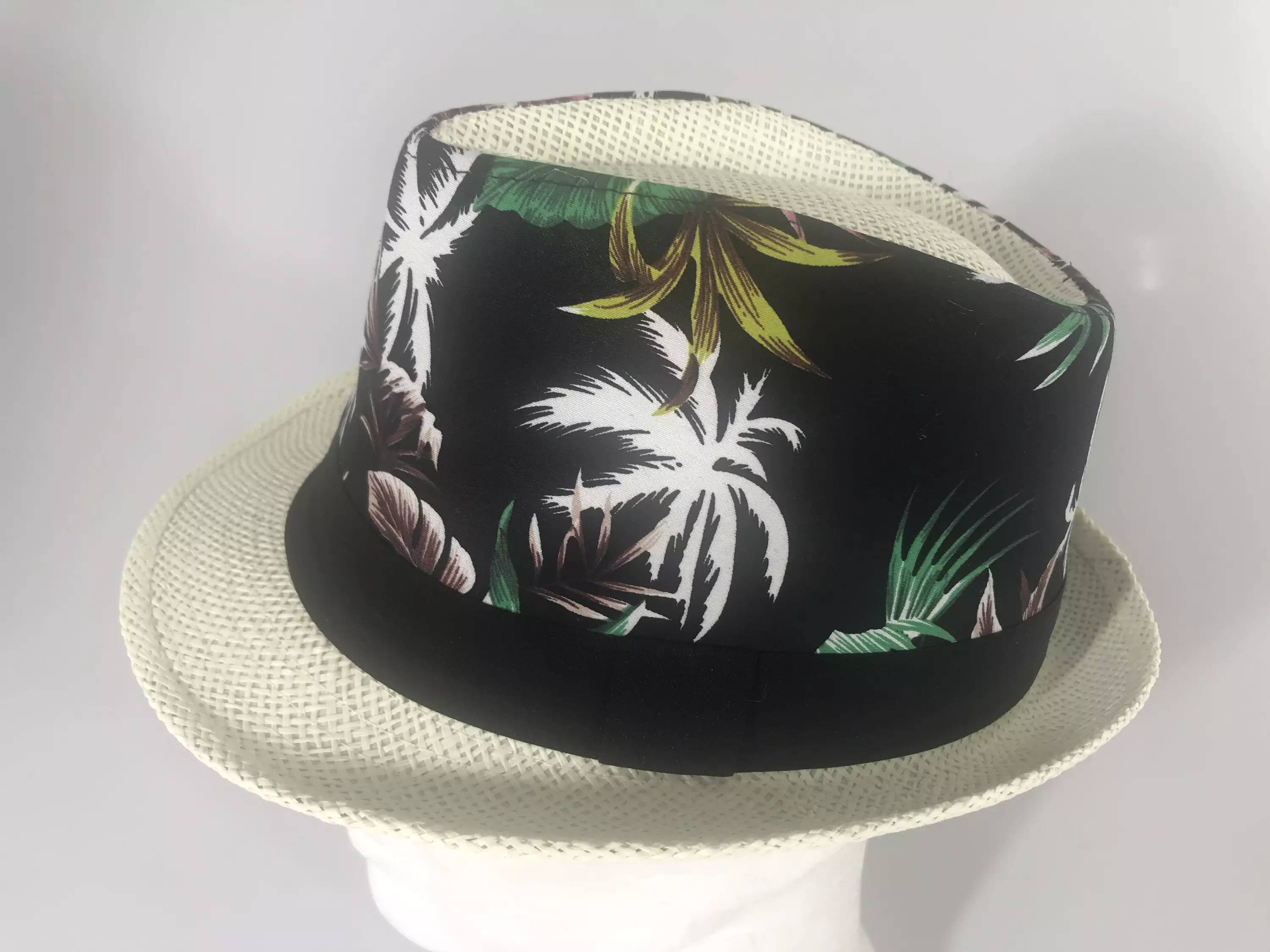 Hattu. Valkoinen hawai tyylinen palmuhattu.