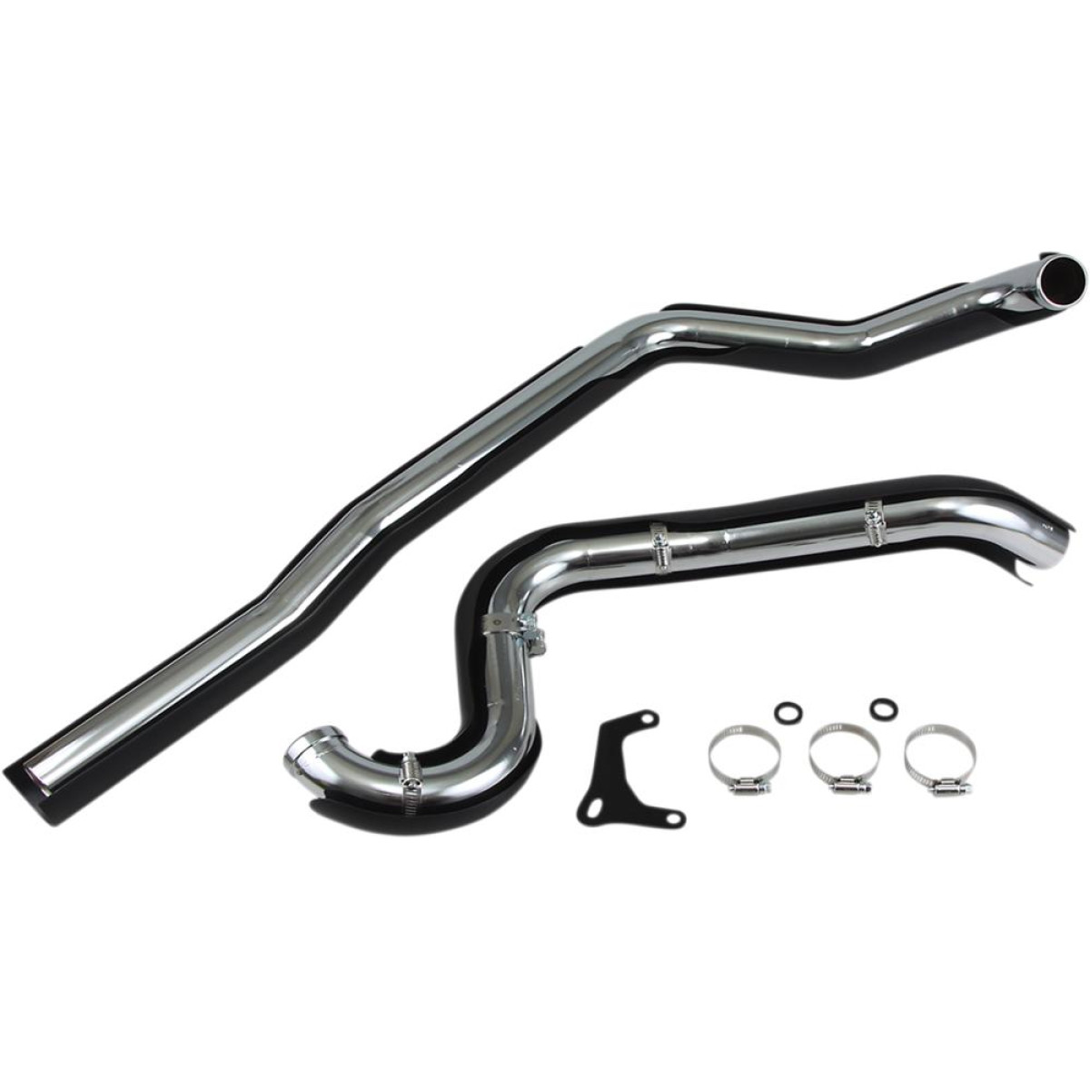 Feature individual 1-3/4 in. headpipes for increased exhaust flow 2.5 in. one-piece heat shields provide proportionality and seamless, unbroken flow to traditionally styled V-Twins Accept Cobra slip-on mufflers or any 95-up OEM-style mufflers: BLV6201SD, BLV6201UC, 1801-0099