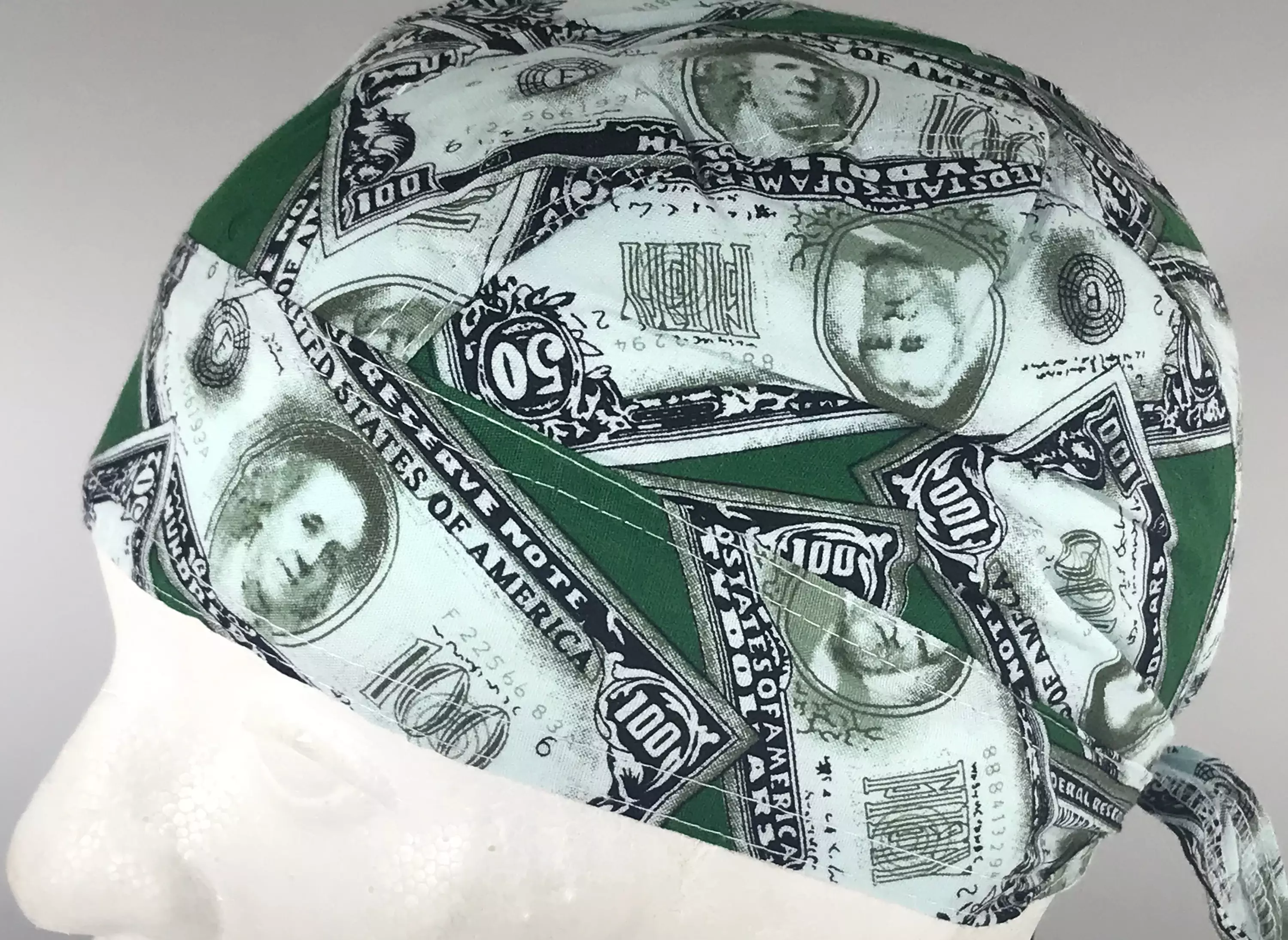 Headwrap, dollarit, vihreä. Muotoonommeltu headwrap huivi. Yksi koko. Solmittavat nauhat takana. 100 % puuvillaa.