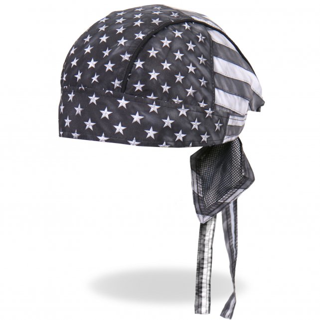 Headwrap, Hot Leathers, Harmaa lippu. Verkkovuorellinen headwrap, joka siirtää tehokkaasti kosteutta. Konepesu. Käytä kypärän alla tai ilman. Vain yksi koko.