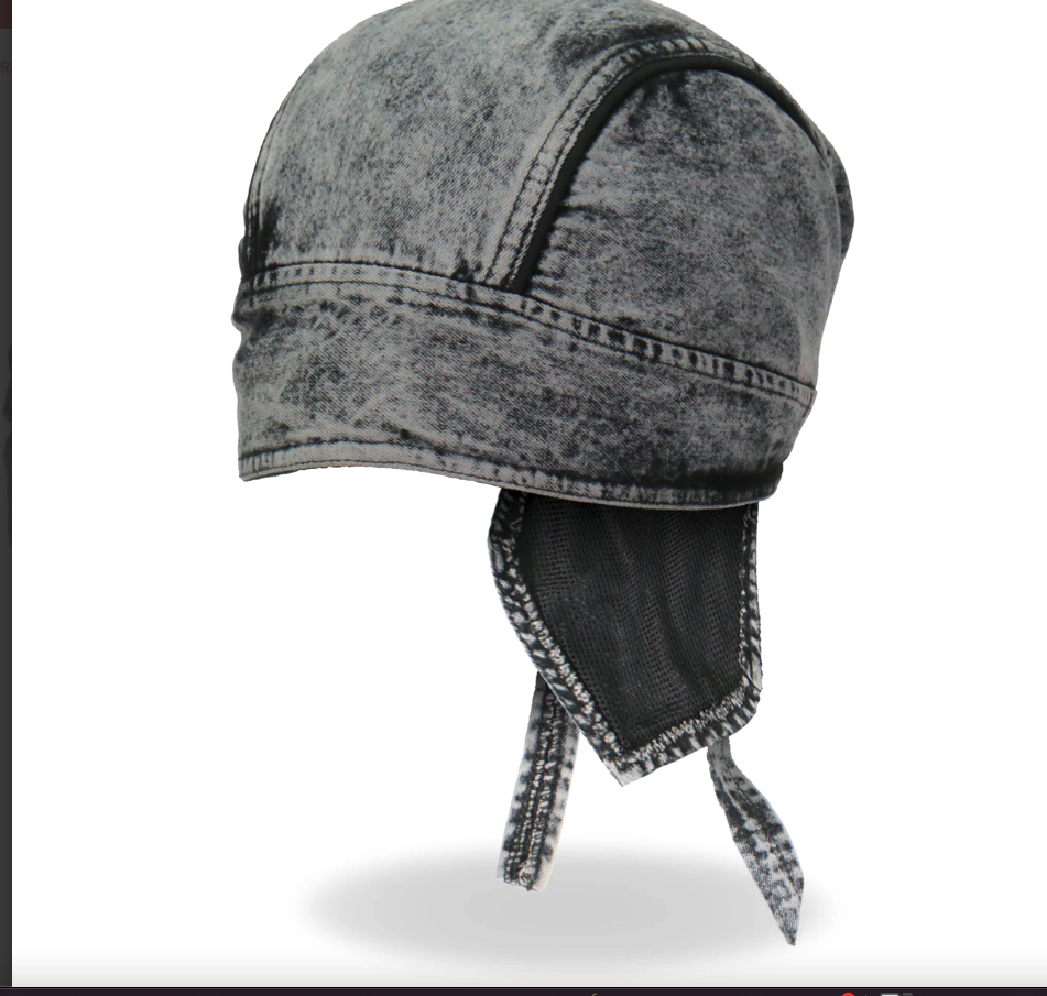 Headwrap kulutettu farkku ilmava vuori HOT LEATHERS CHARCOAL DYE DENIM HEADWRAP